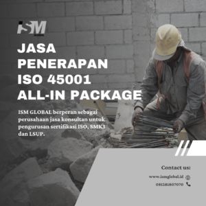 Bagi Anda yang ingin implementasi yang efisien dan menyeluruh, paket jasa penerapan ISO 45001 All-in dari ISM Global adalah solusinya.