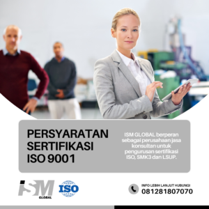 Sertifikasi ISO 9001 adalah standar internasional yang menetapkan persyaratan untuk sistem manajemen mutu (SMM) di suatu organisasi. Untuk mendapatkan sertifikasi ini, perusahaan harus memenuhi sejumlah persyaratan yang dirancang untuk memastikan bahwa mereka dapat secara konsisten menyediakan produk dan layanan yang memenuhi kebutuhan pelanggan dan peraturan yang berlaku. Berikut adalah beberapa persyaratan utama untuk sertifikasi ISO 9001.